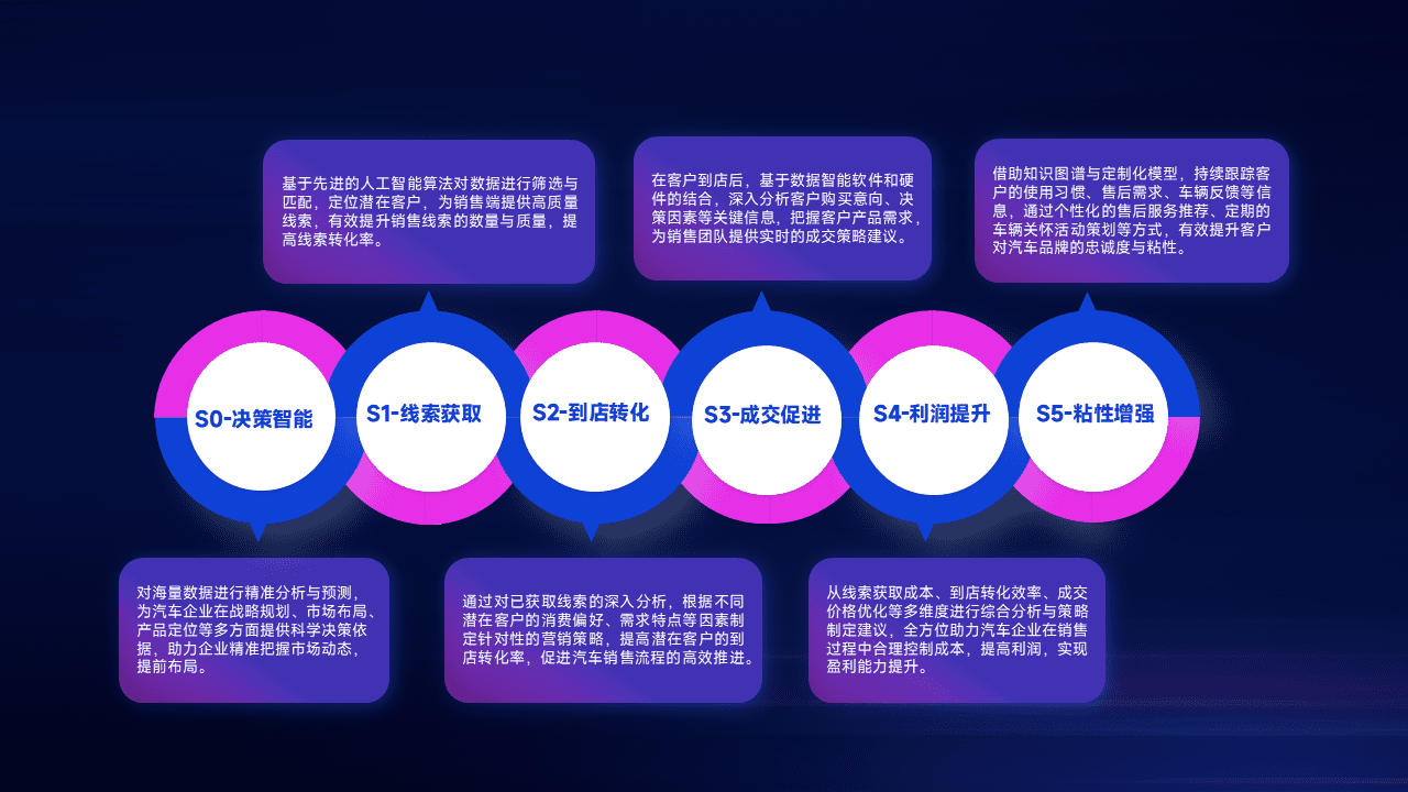 通过拓宽潜在客户来源、、优化线索分配并提高到店转化率,,,,以增强销售效率。。。同时,,,,利用线索数据不断优化分析模型,,有效提升转化率,,,扩大营销影响力。。